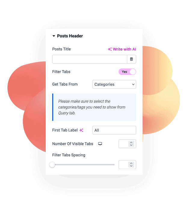 Elementor Custom Post Listing widget has the option to show AJAX filter tabs to filter your posts or any custom post type by category or tag.